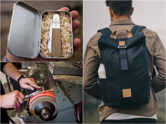 | Pocket knife made in Sheffield and the Winnats Roll Top Back Pack from The Level Collective |